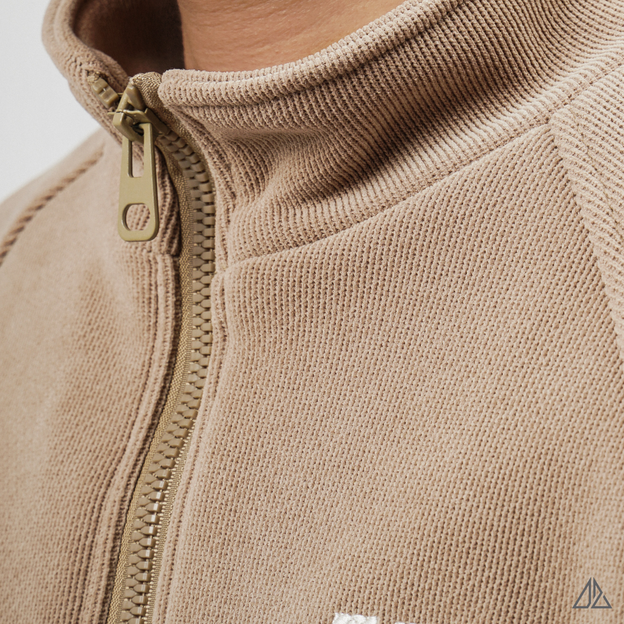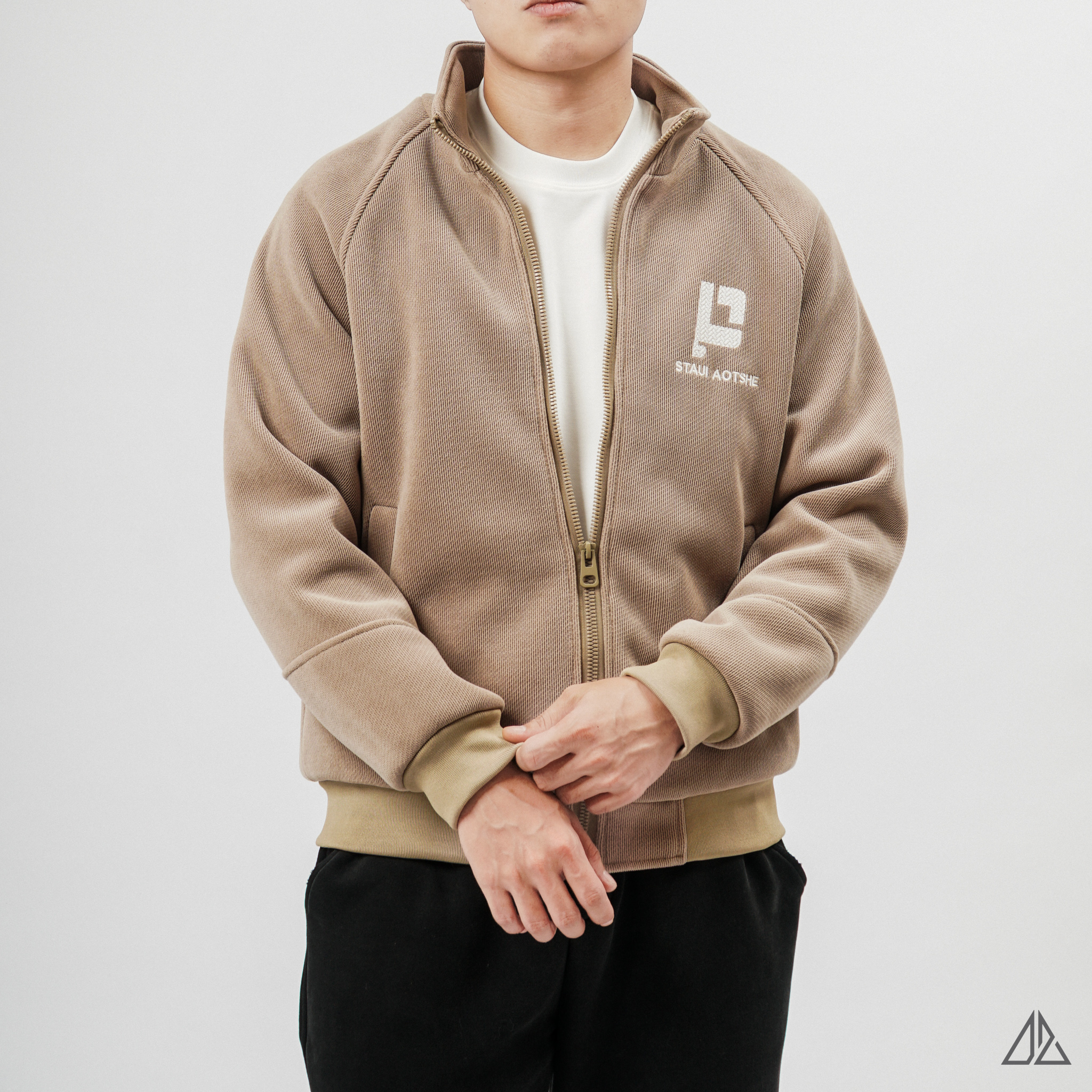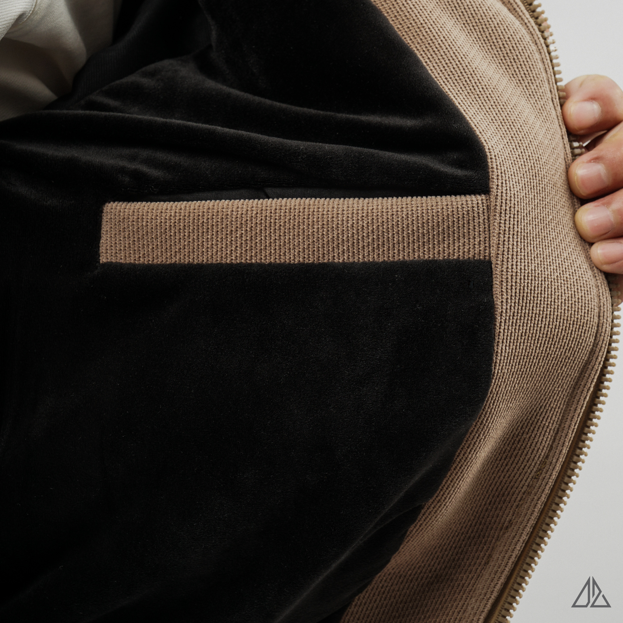 • Lớp ngoài: Sử dụng vải nhung tăm (Corduroy) với các đường gân dọc đặc trưng. Bề mặt vải có độ đanh chắc giúp áo luôn đứng form, đồng thời tạo hiệu ứng bắt sáng nhẹ nhàng, sang trọng dưới ánh sáng tự nhiên.