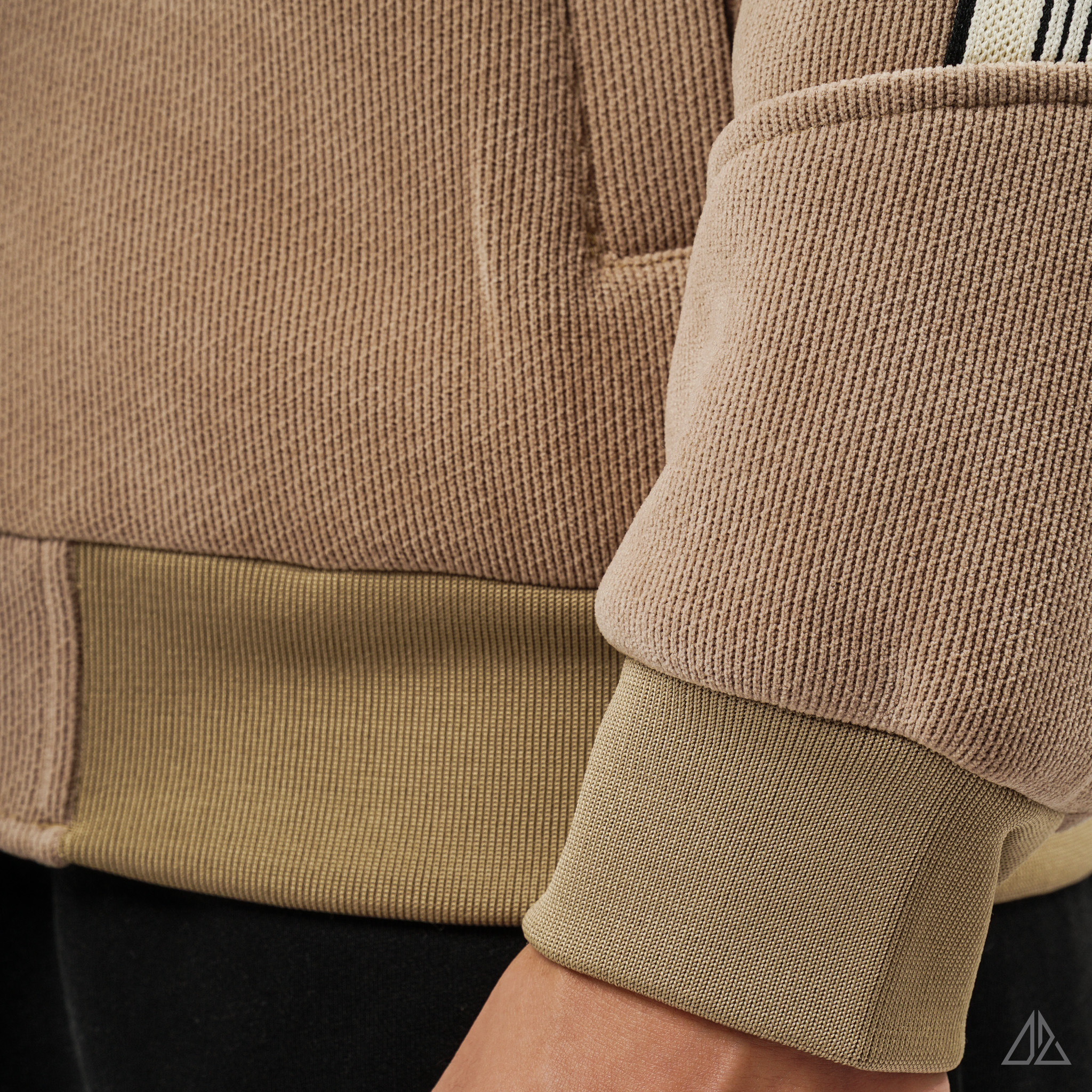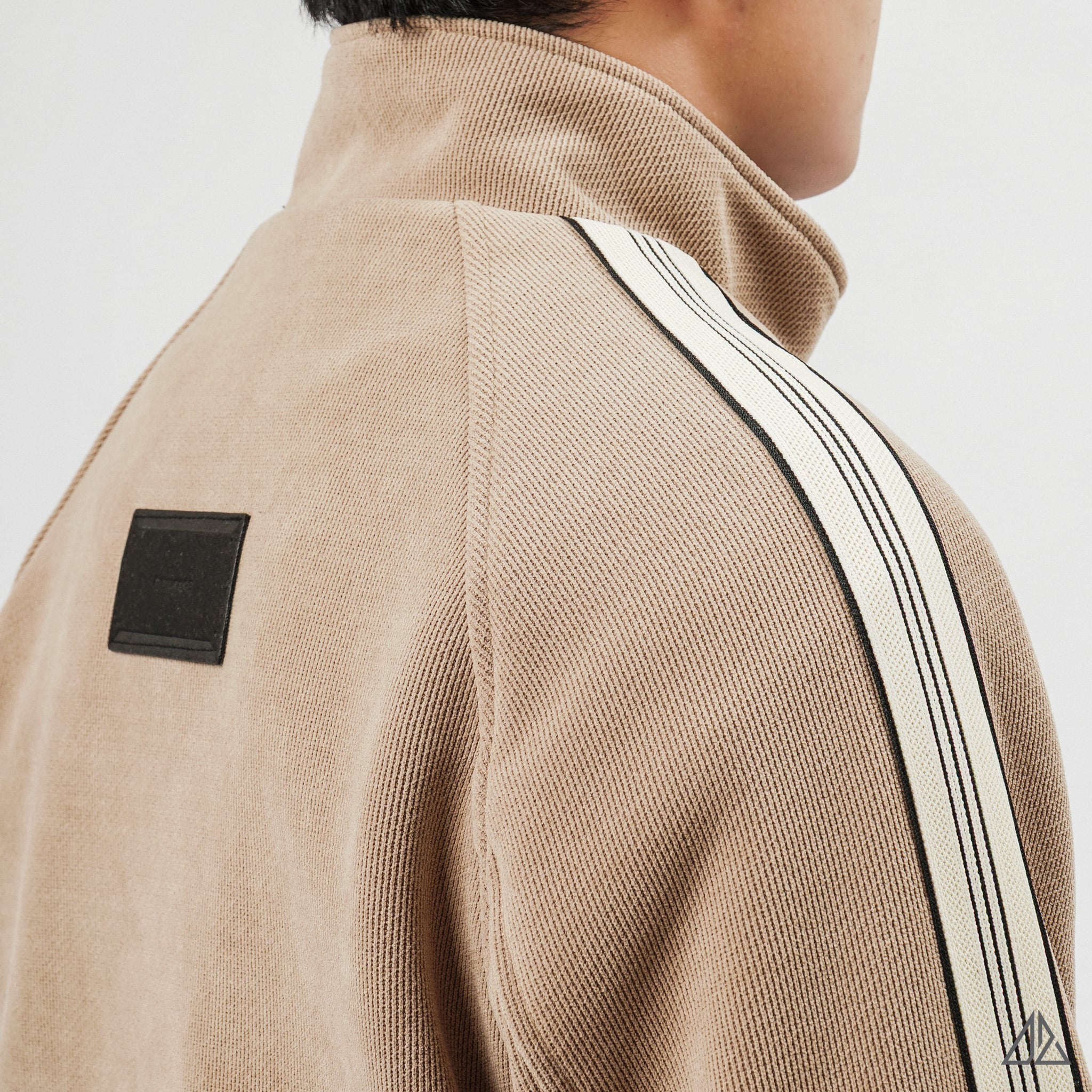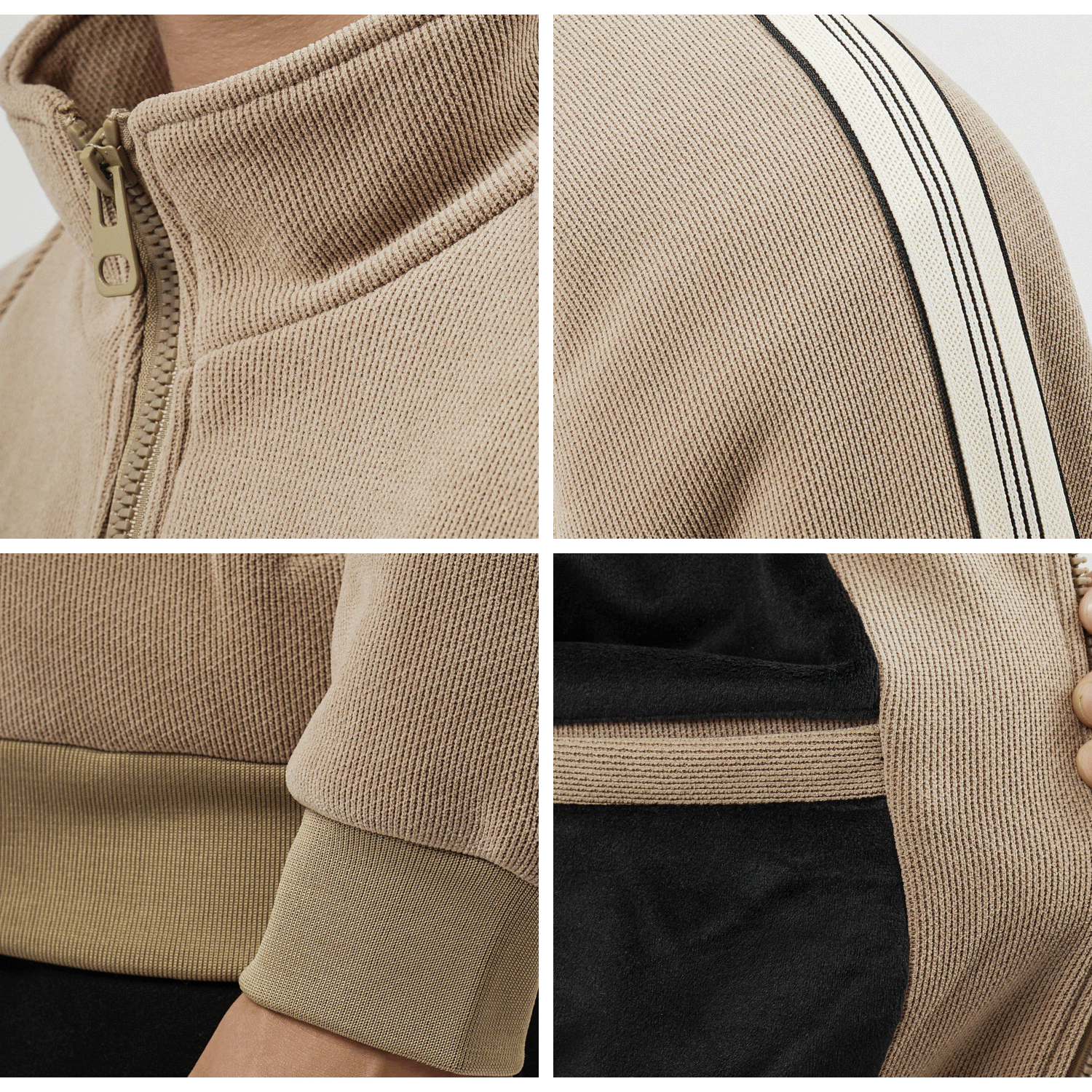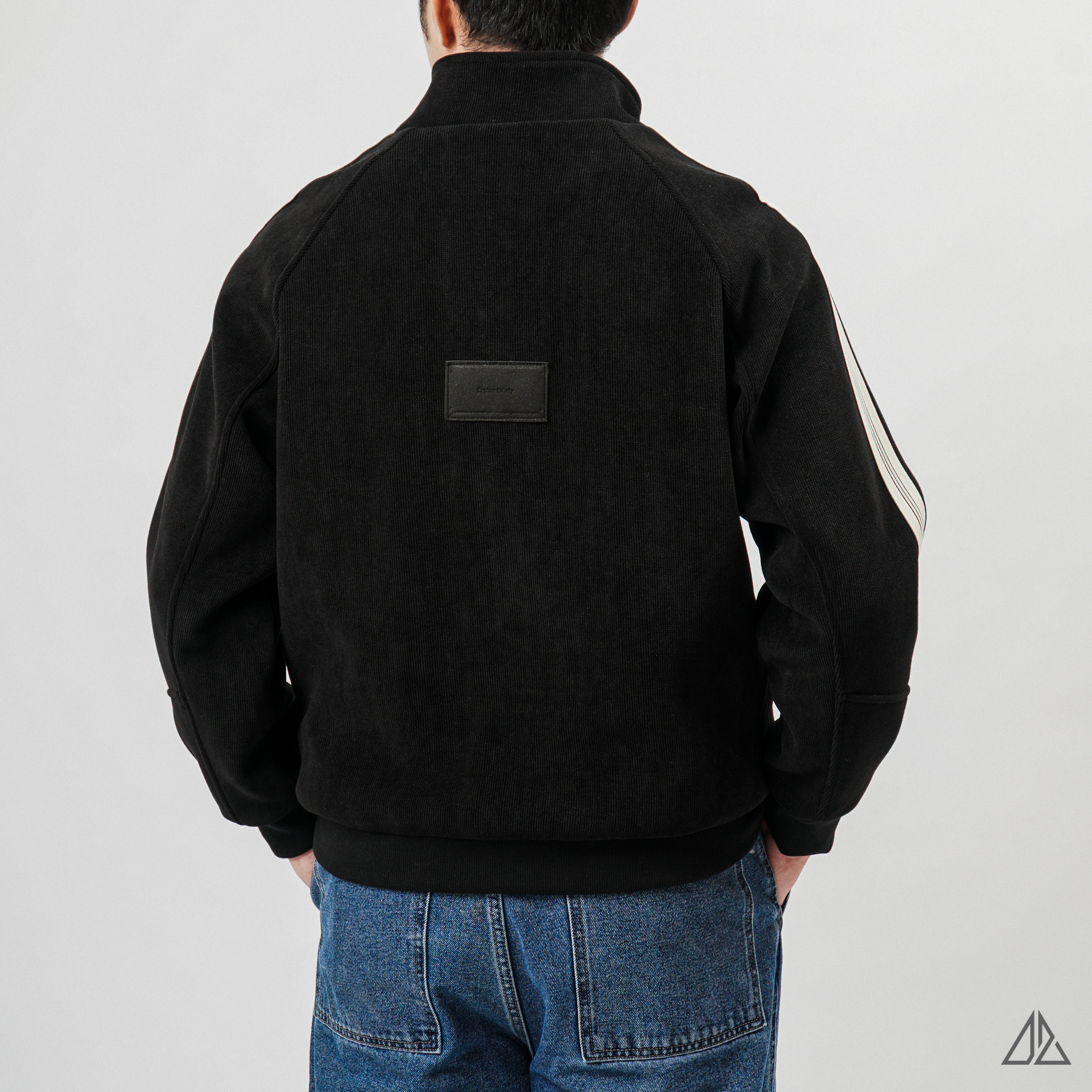 • Lớp ngoài: Là chất liệu nhung tăm (Corduroy) với những đường gân dọc đặc trưng. Bề mặt vải có độ lì, bắt sáng nhẹ giúp chiếc áo trông dày dặn và đứng form, hạn chế nhăn nhàu hiệu quả.