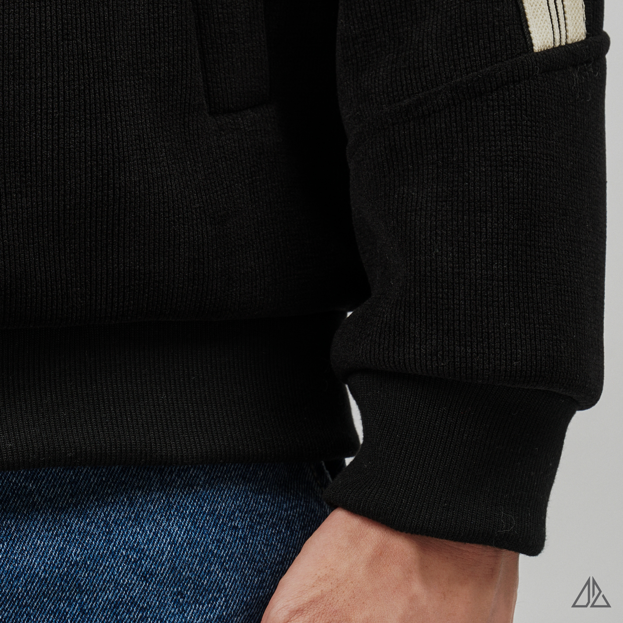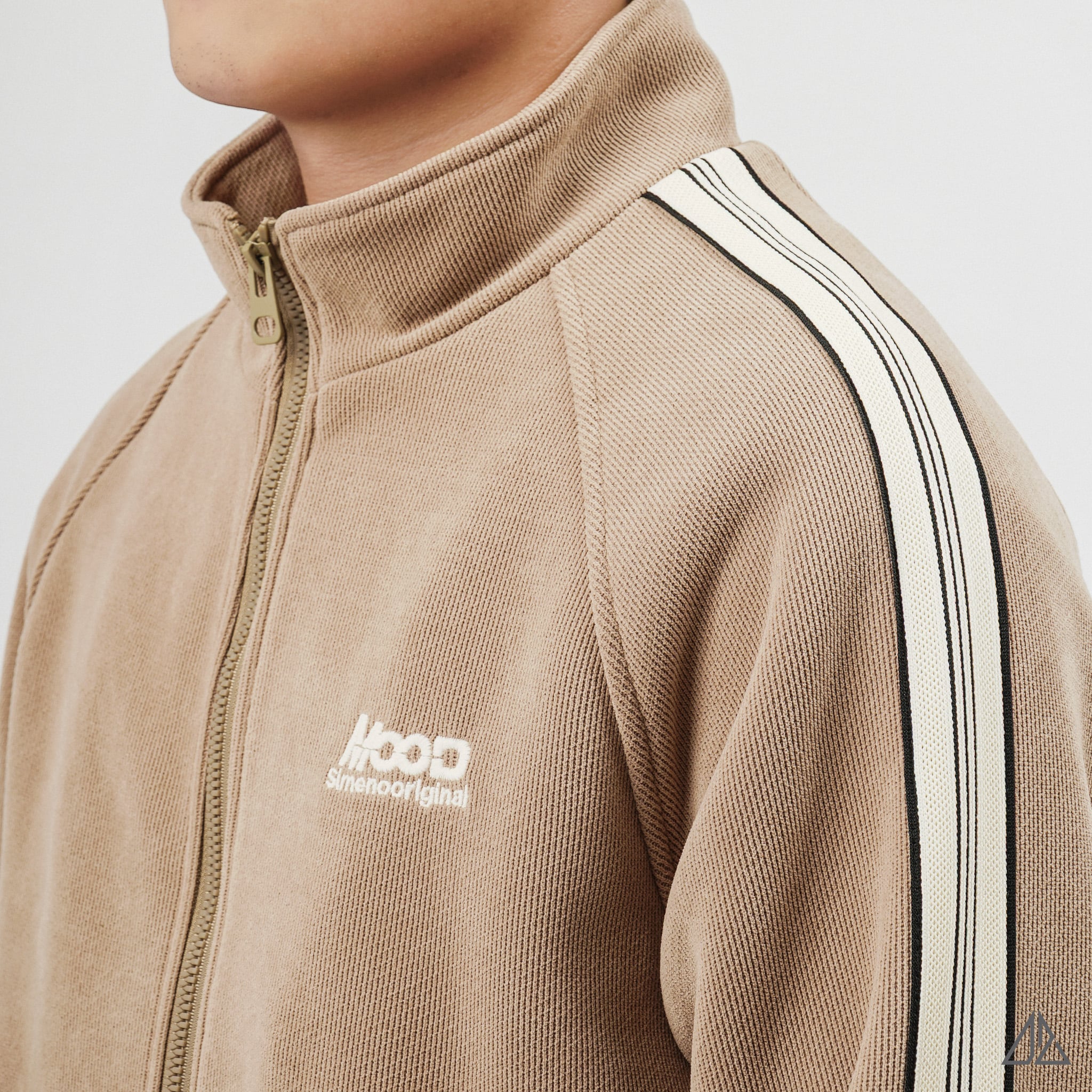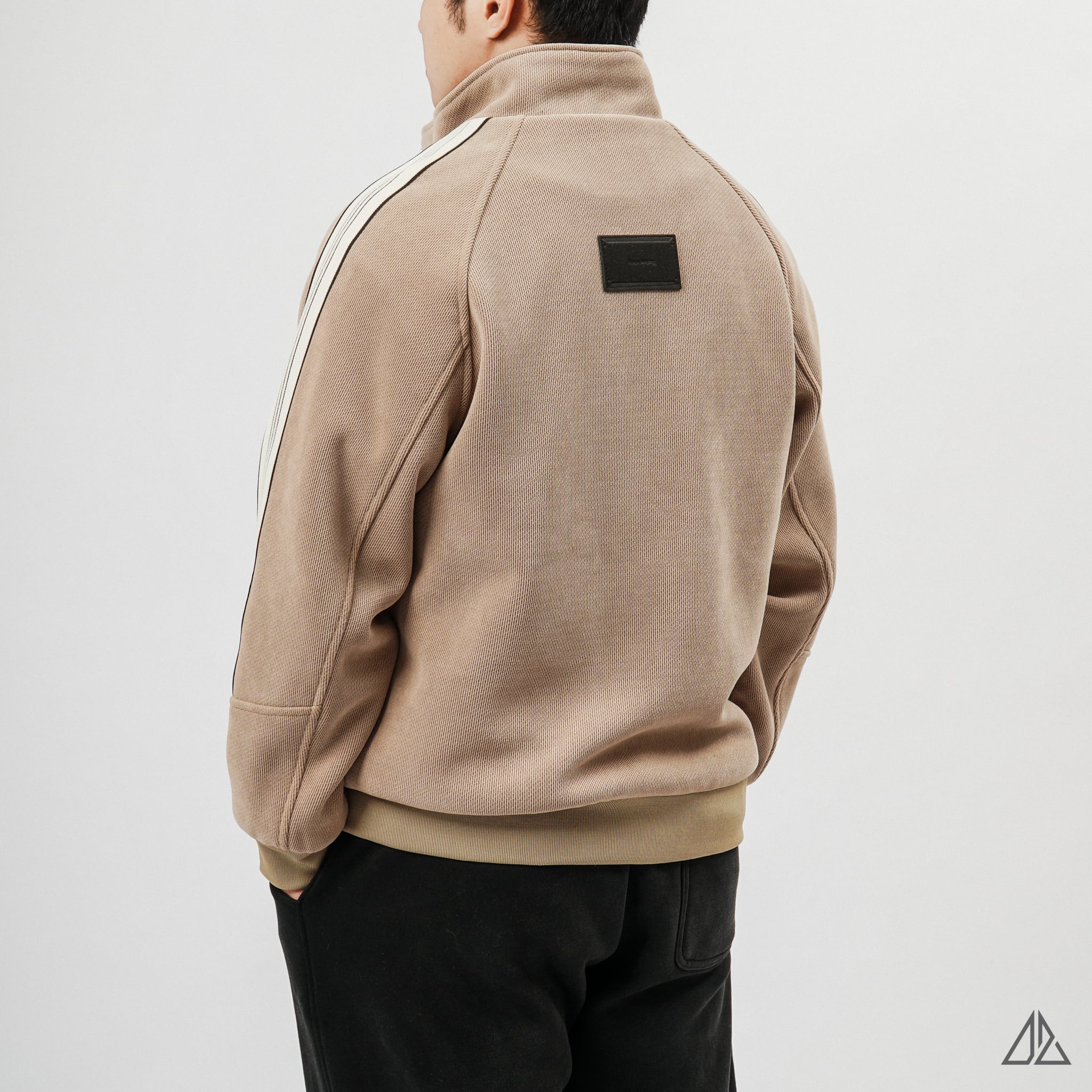 Về thiết kế: K-6609 sở hữu phom dáng Regular Fit thoải mái với phần tay áo Raglan linh hoạt. Điểm nhấn đắt giá nằm ở dải line trắng chạy dọc từ vai xuống tay áo, tạo nên vẻ ngoài khỏe khoắn, năng động (Sporty Chic). Chi tiết logo thêu "MOOD" trước ngực và patch da dập nổi phía sau lưng được xử lý tinh tế, khẳng định gu thẩm mỹ tối giản nhưng không đơn điệu.