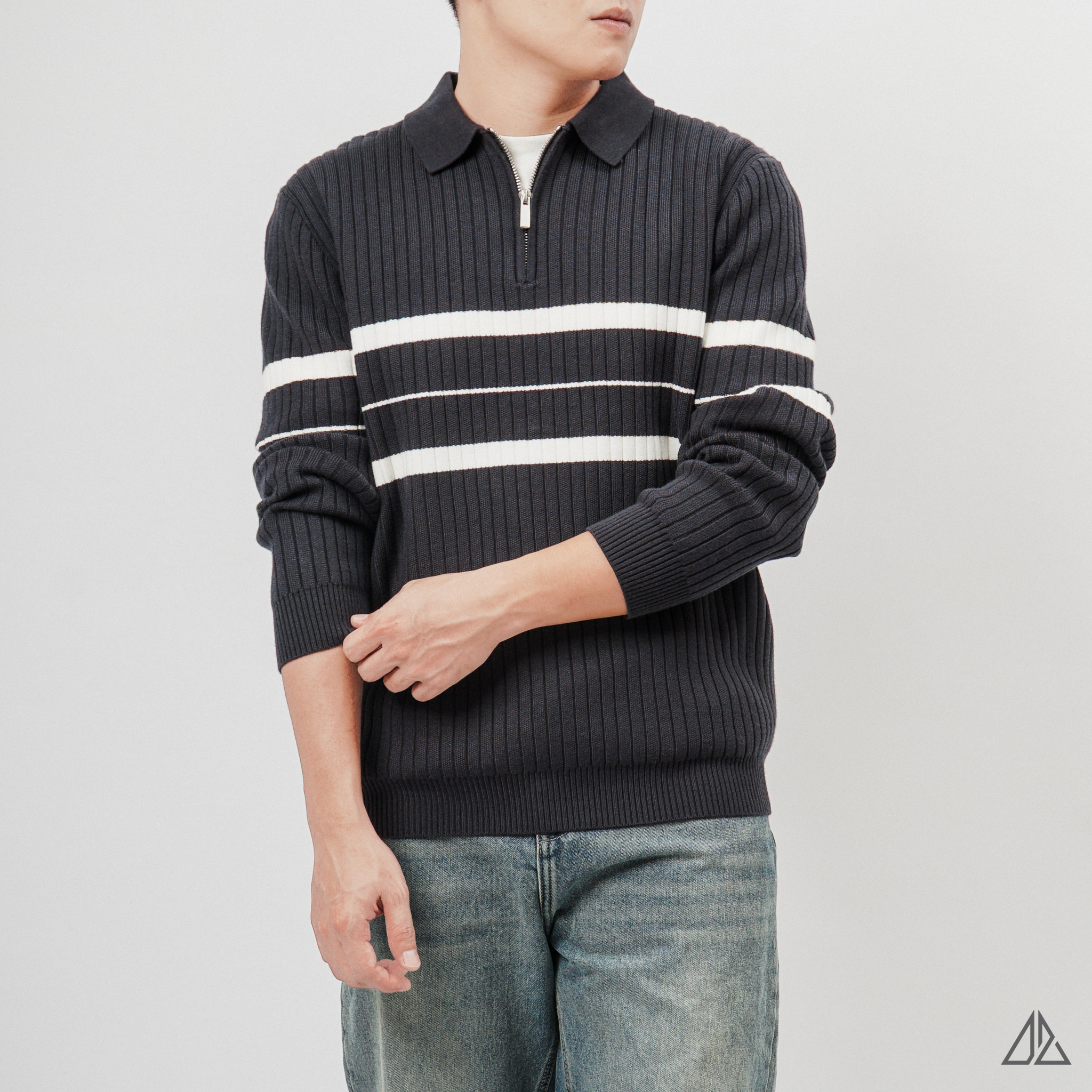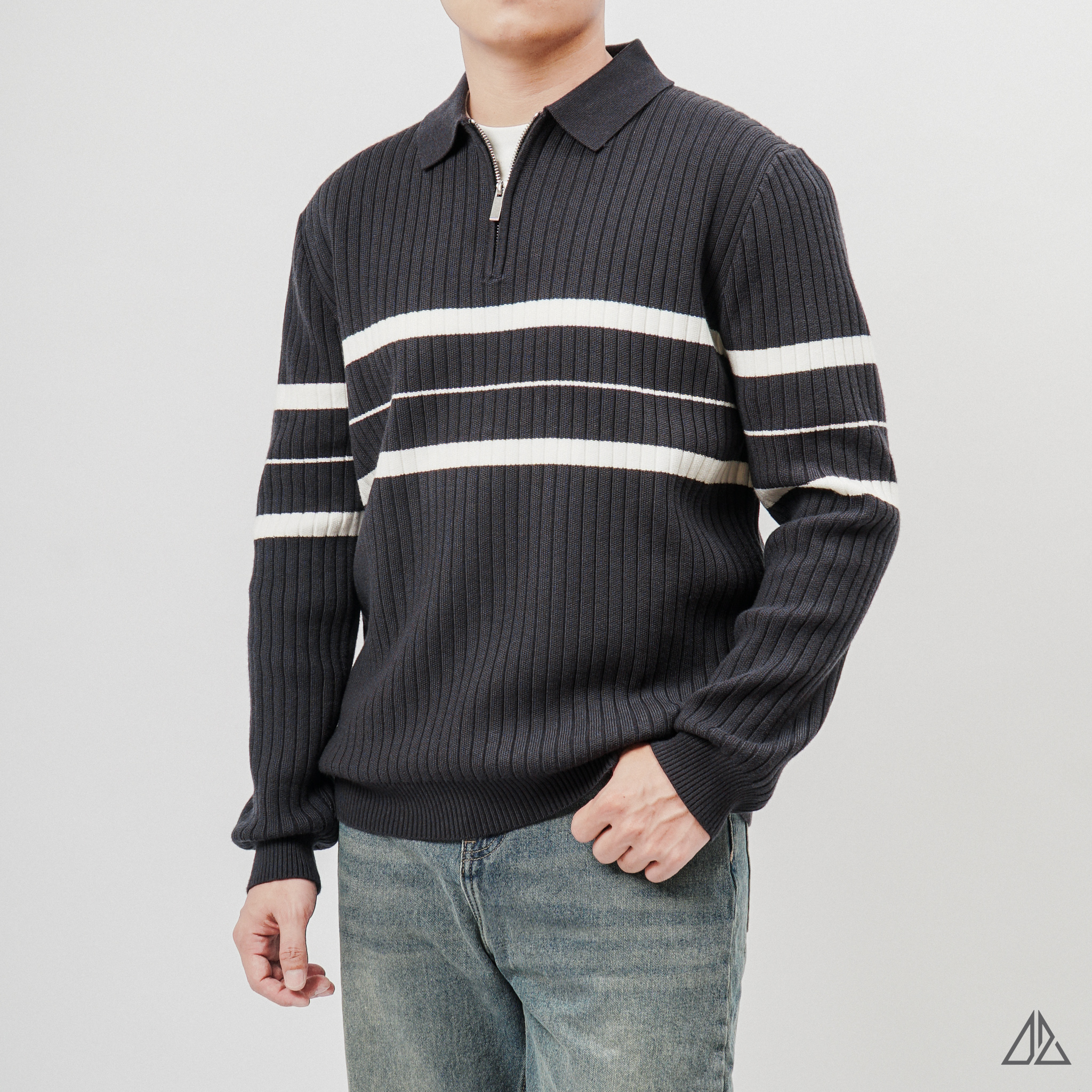 Áo Len Nam D2SHOP cổ zip phối kẻ sọc AL-3327 mang đến trải nghiệm mặc hoàn toàn khác biệt nhờ kết cấu sợi vải đặc biệt và phom dáng đề cao sự thoải mái.