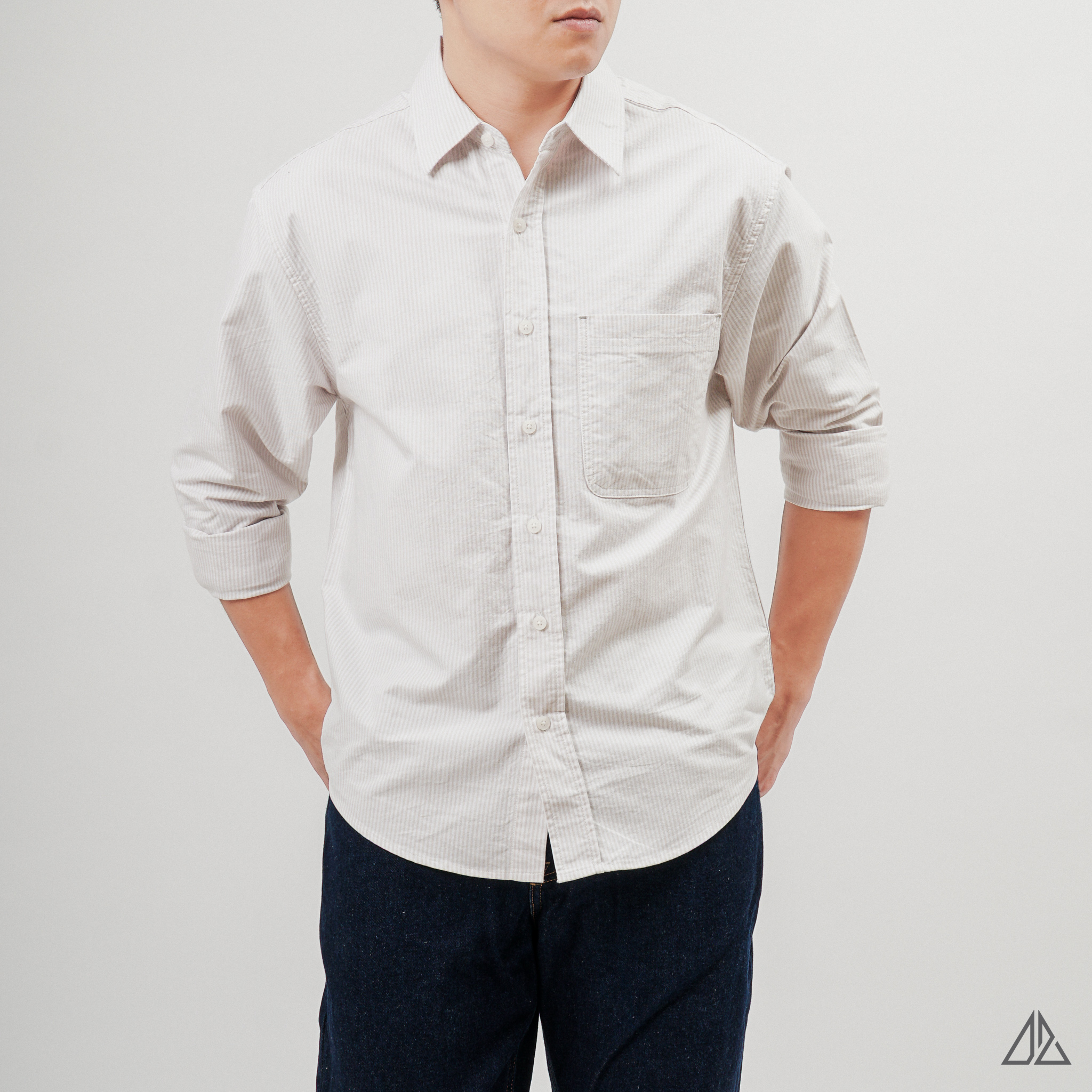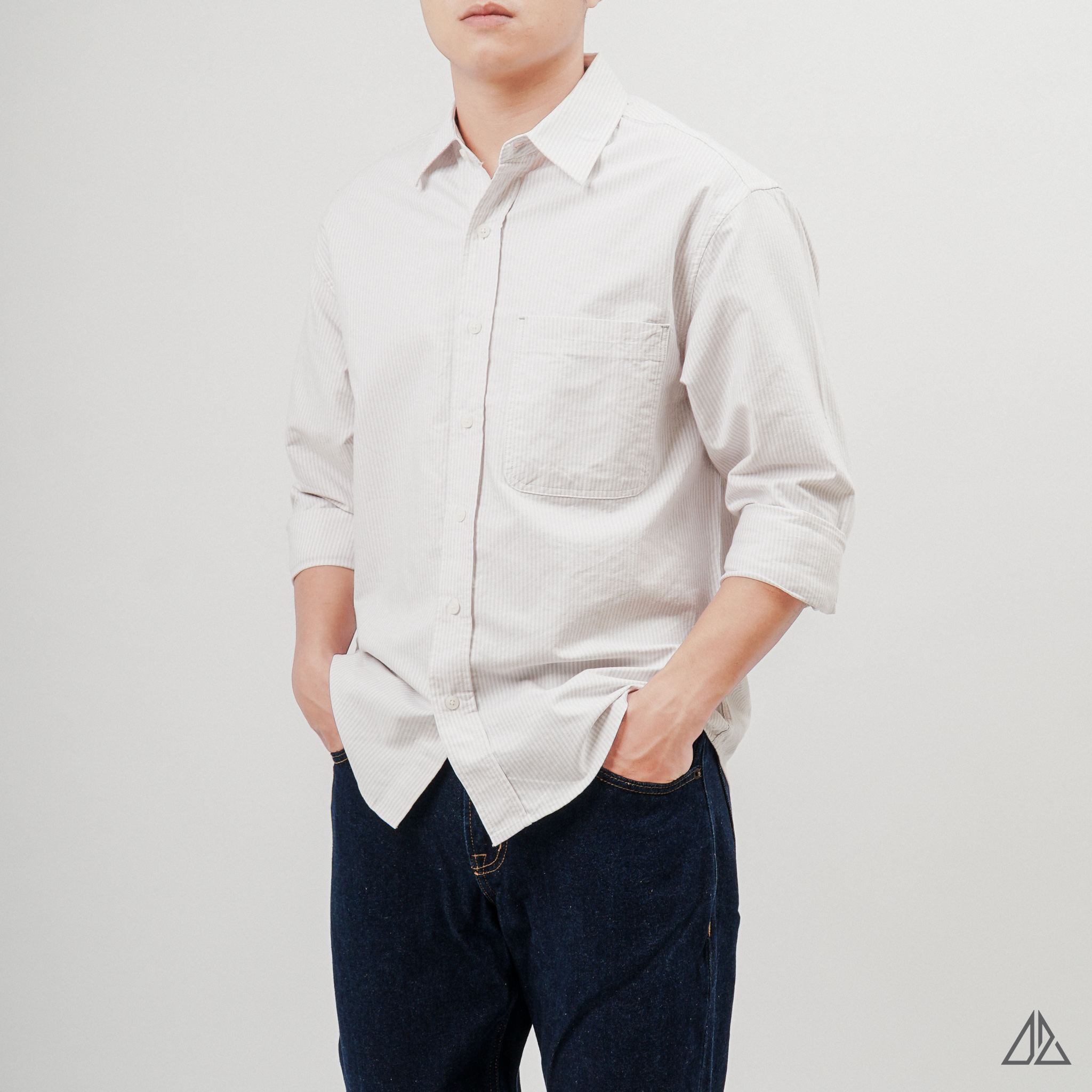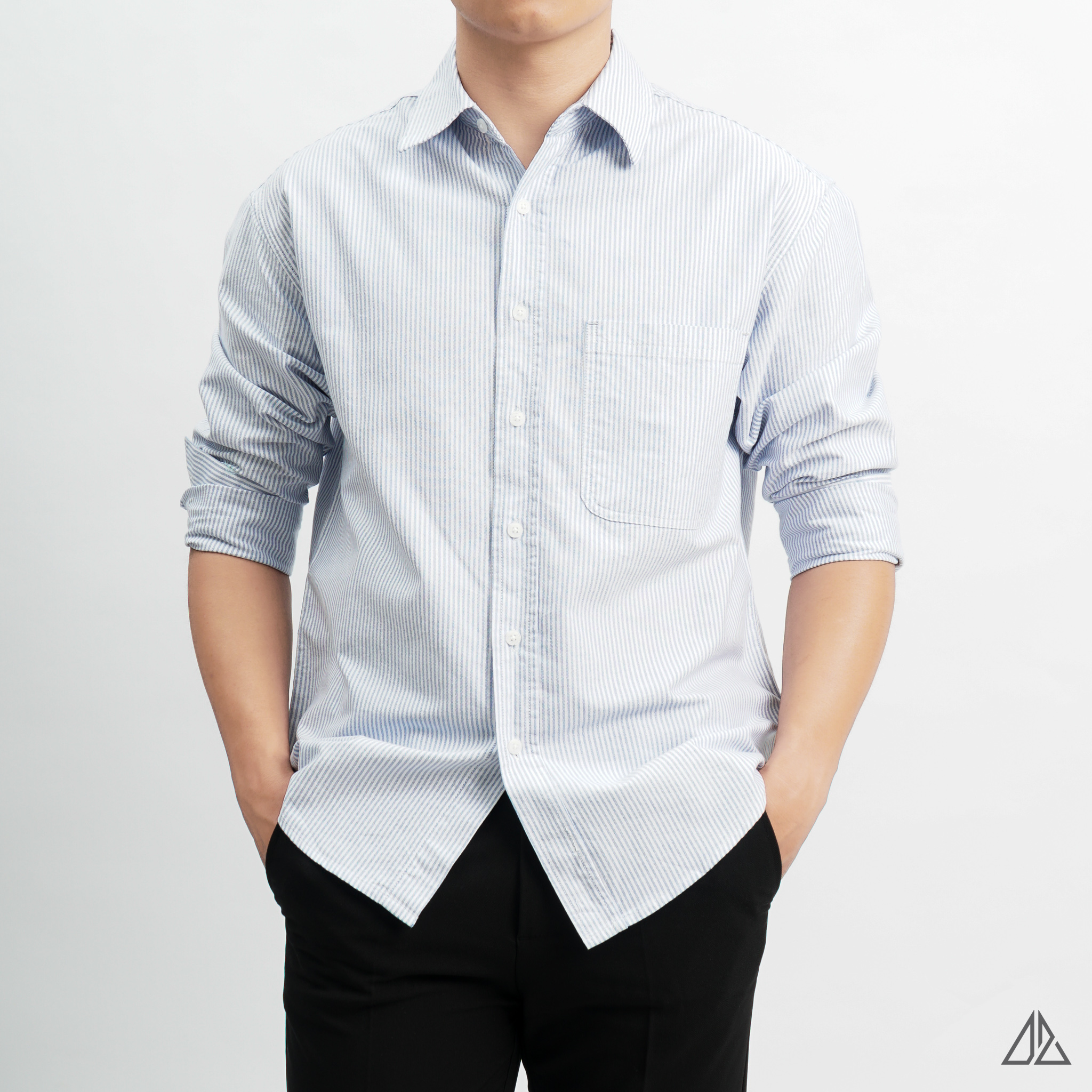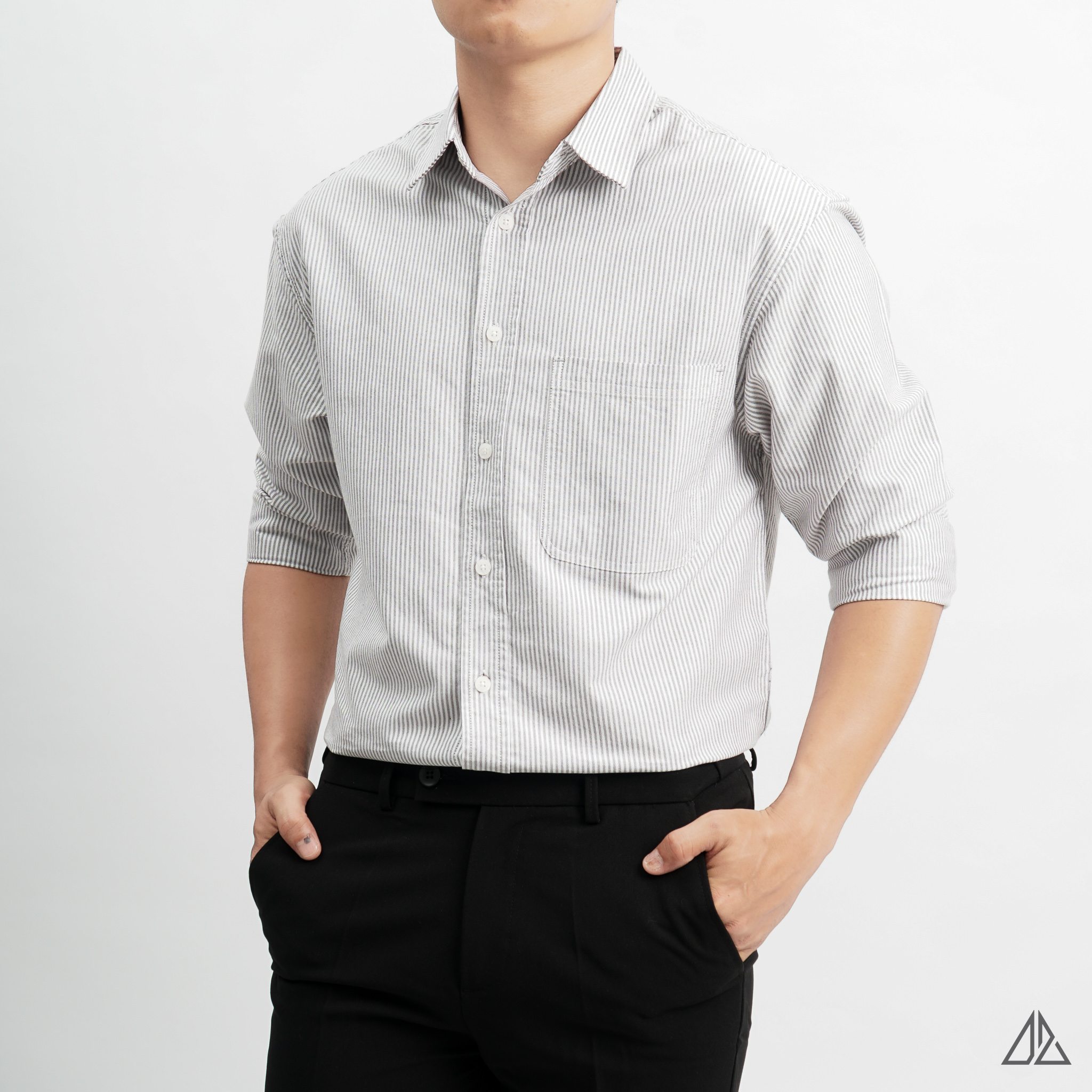 Áo sơ mi nam D2SHOP, áo sơ mi sọc phối túi, vải pho [SM-2411]