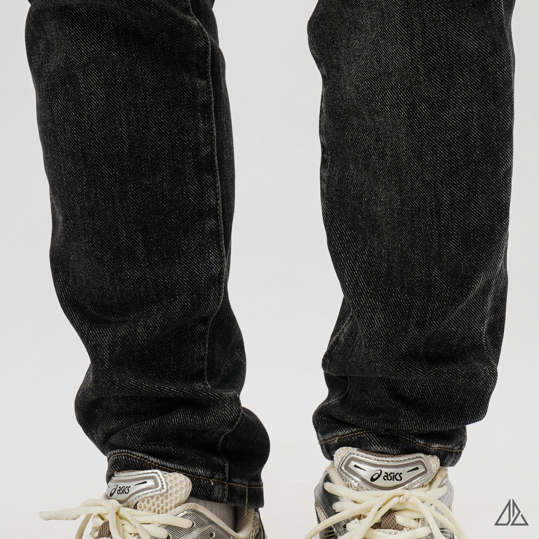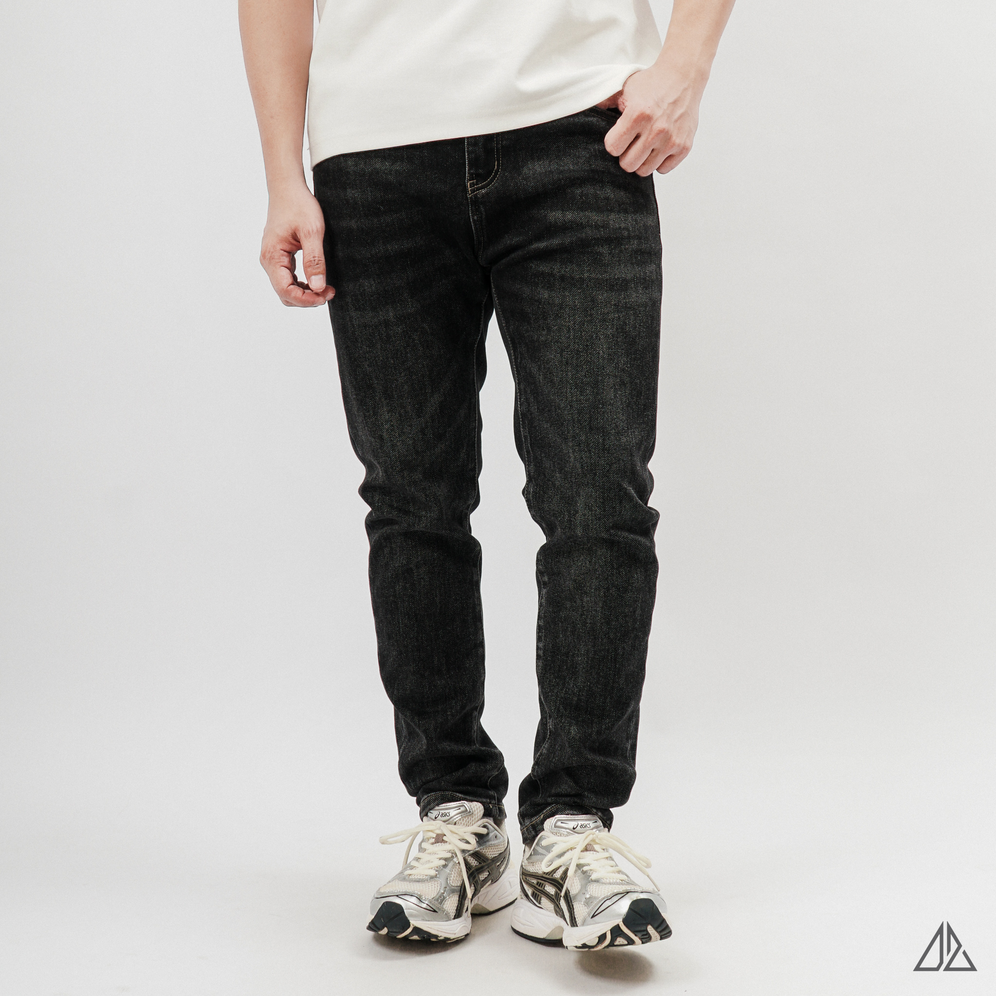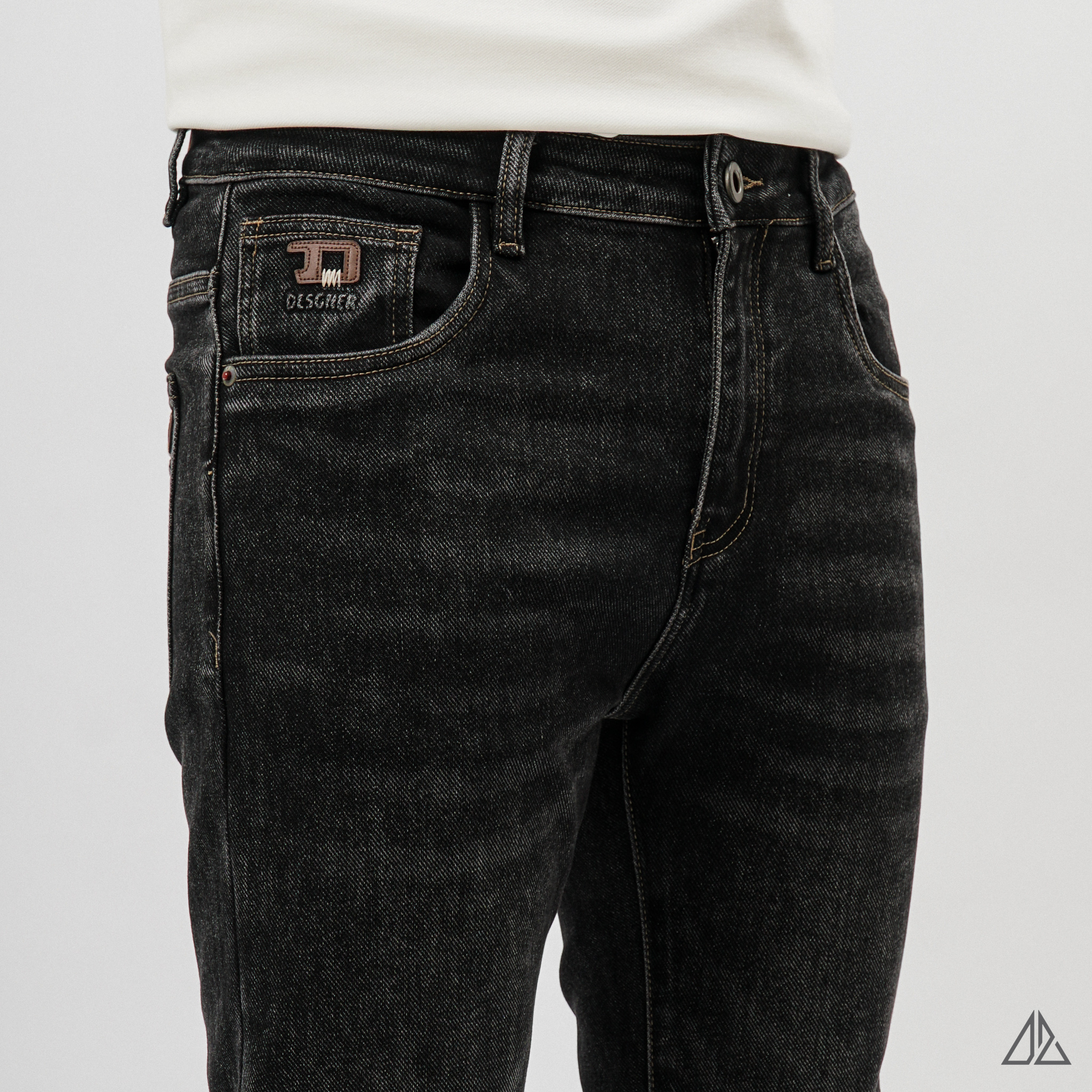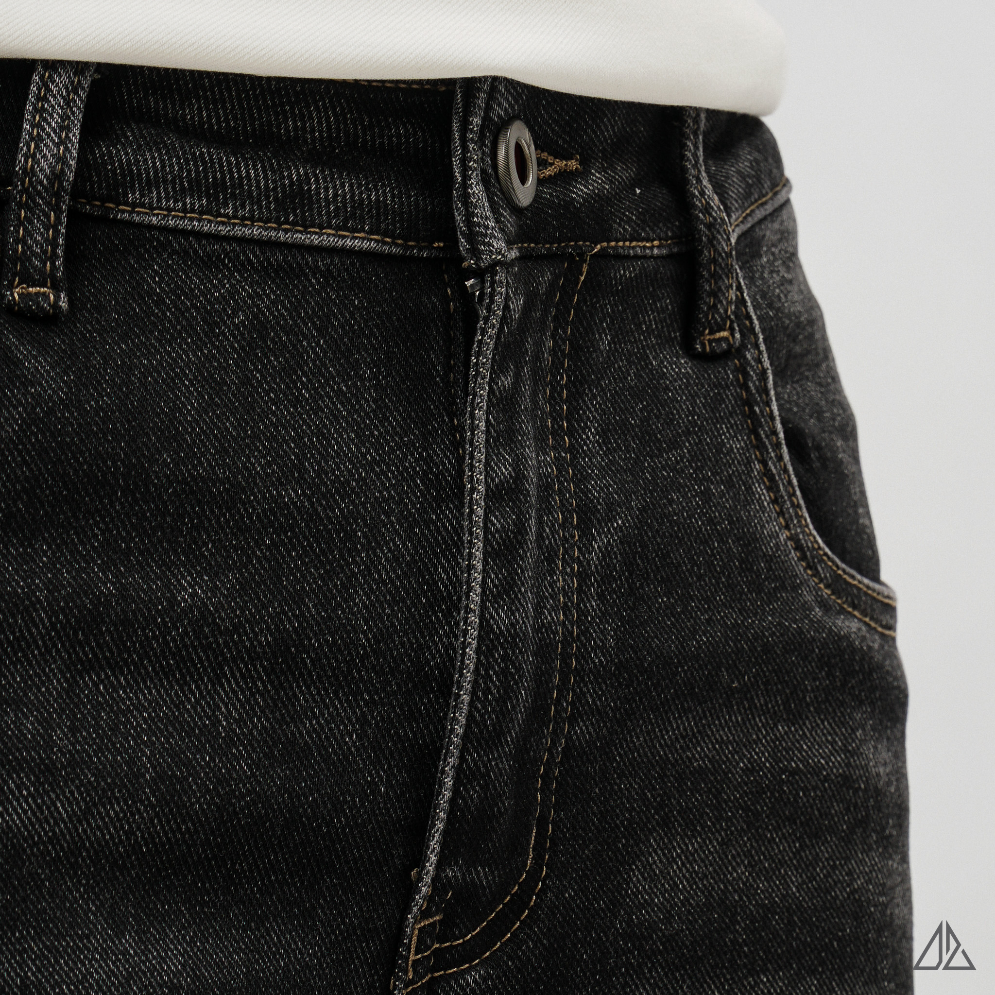 • Màu sắc: Tông màu đen được xử lý wash hạt (stone wash) nhẹ, giúp bề mặt vải có độ "bụi" tự nhiên và không bị đơn điệu.