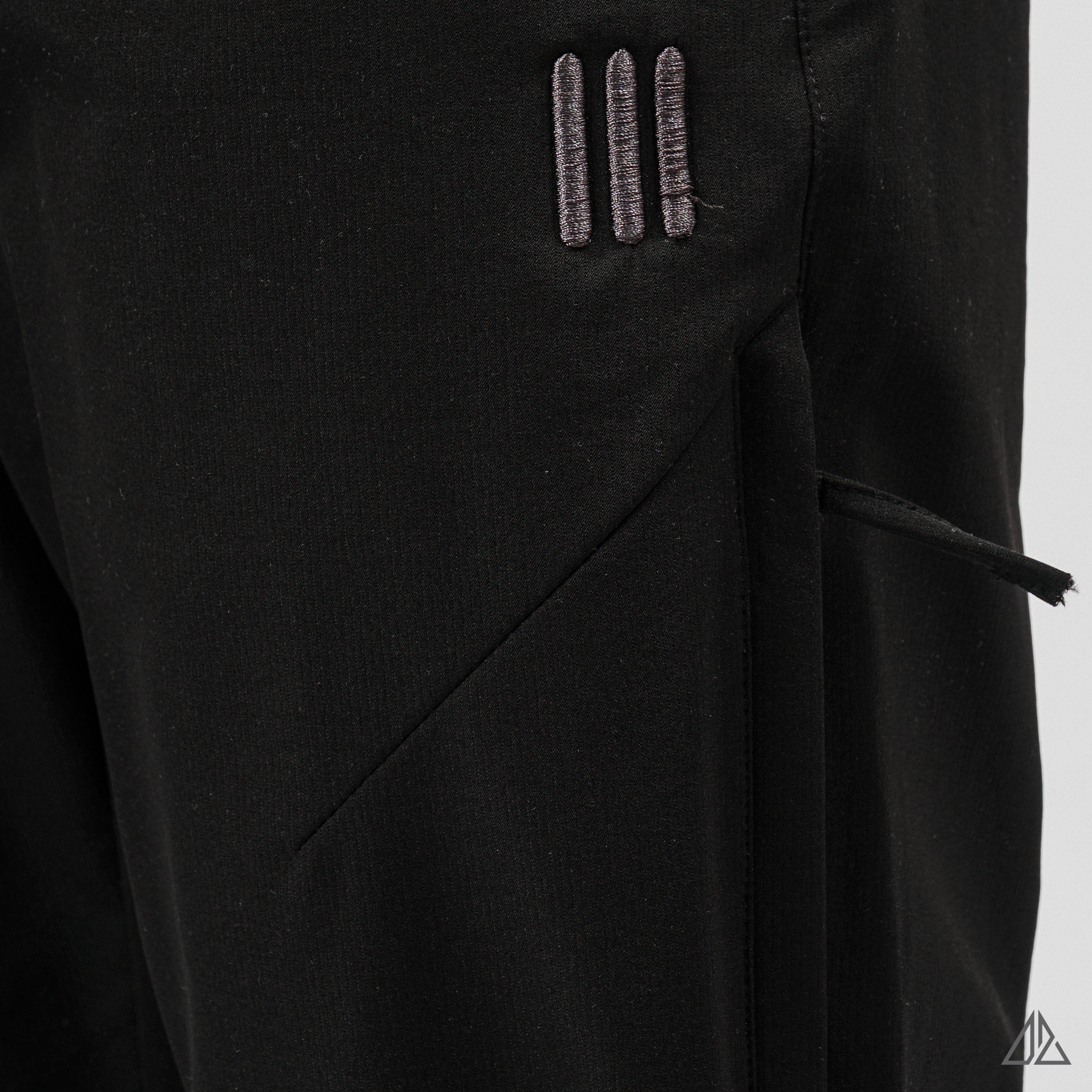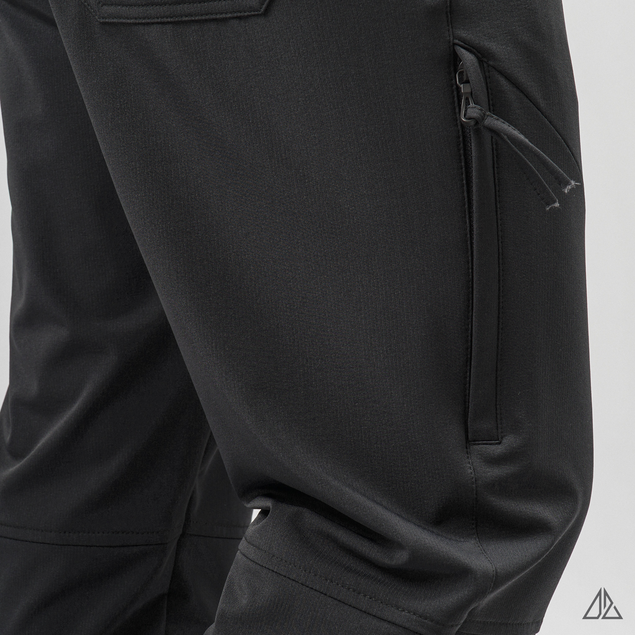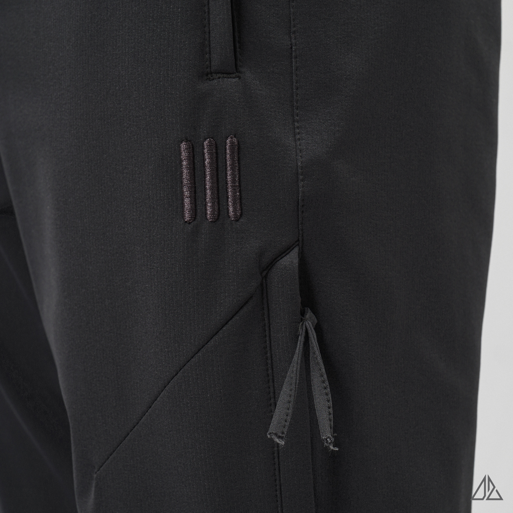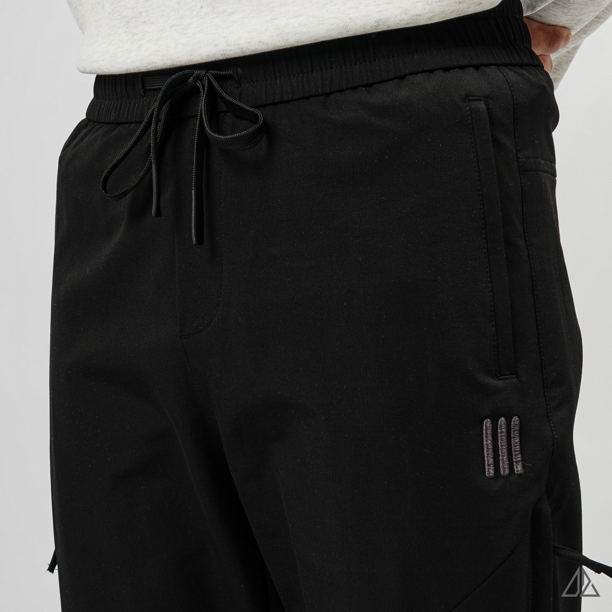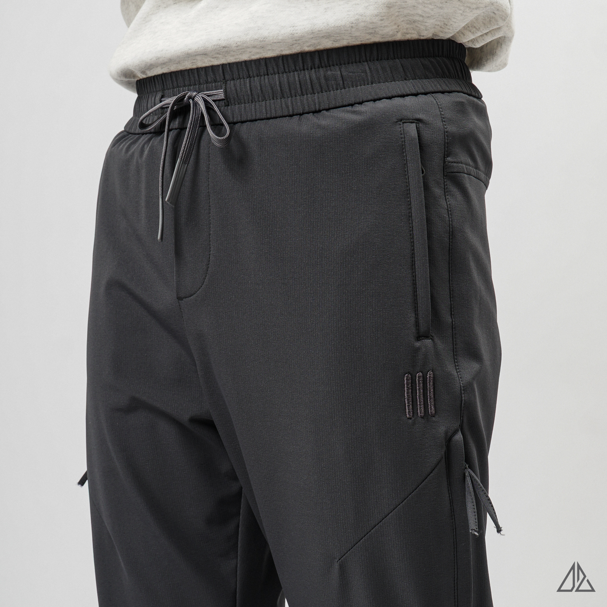 • Chi tiết kỹ thuật: Điểm nhấn đắt giá là hệ thống túi khóa zip dọc bên hông đùi, vừa tạo nét cá tính hầm hố, vừa cực kỳ an toàn để đựng điện thoại, ví tiền khi di chuyển. Logo thêu 3 vạch "|||" nhỏ gọn tinh tế tạo dấu ấn riêng biệt.