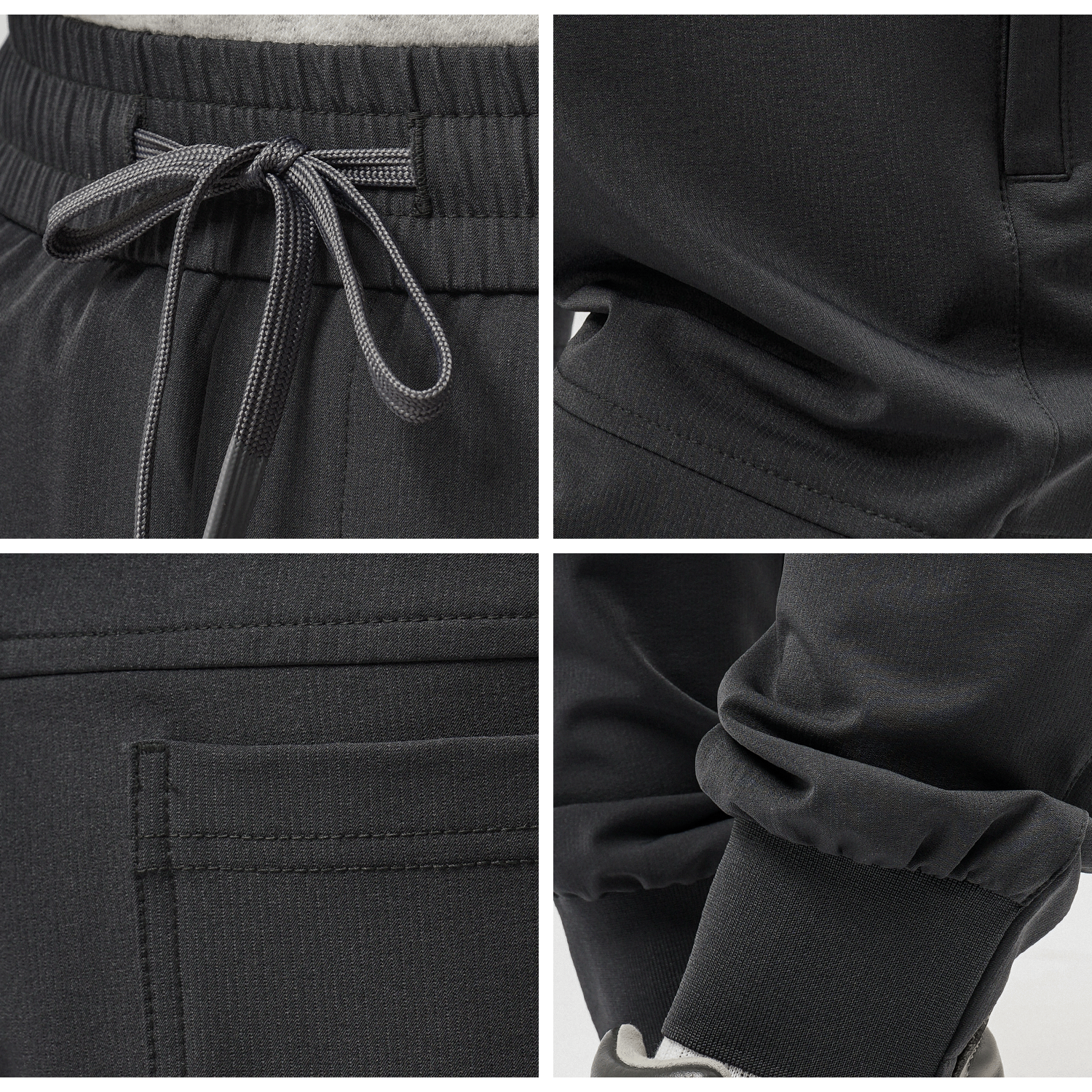 • Cấu trúc: Các đường cắt cúp (seaming) ở vùng đầu gối không chỉ để trang trí mà còn giúp form quần ôm chân tự nhiên, hỗ trợ vận động tối đa mà không gây căng kích.