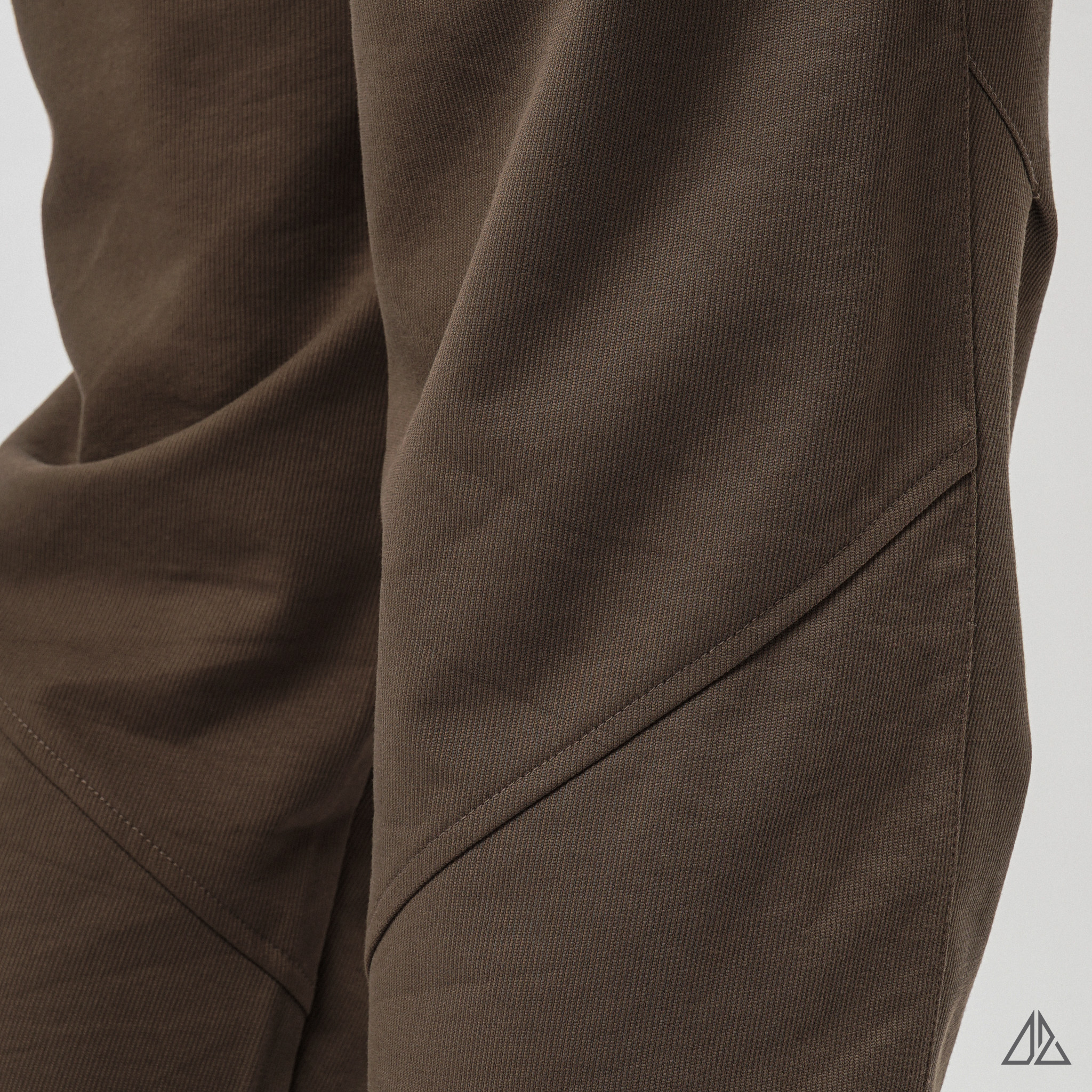 • Điểm nhấn kỹ thuật: Chi tiết "đắt giá" nhất là đường rã cúp xéo (Seam Detail) chạy qua vùng đùi/gối. Đây không chỉ là chi tiết trang trí mà còn tạo phom 3D giúp đầu gối cử động dễ dàng hơn, không bị căng kích khi ngồi.