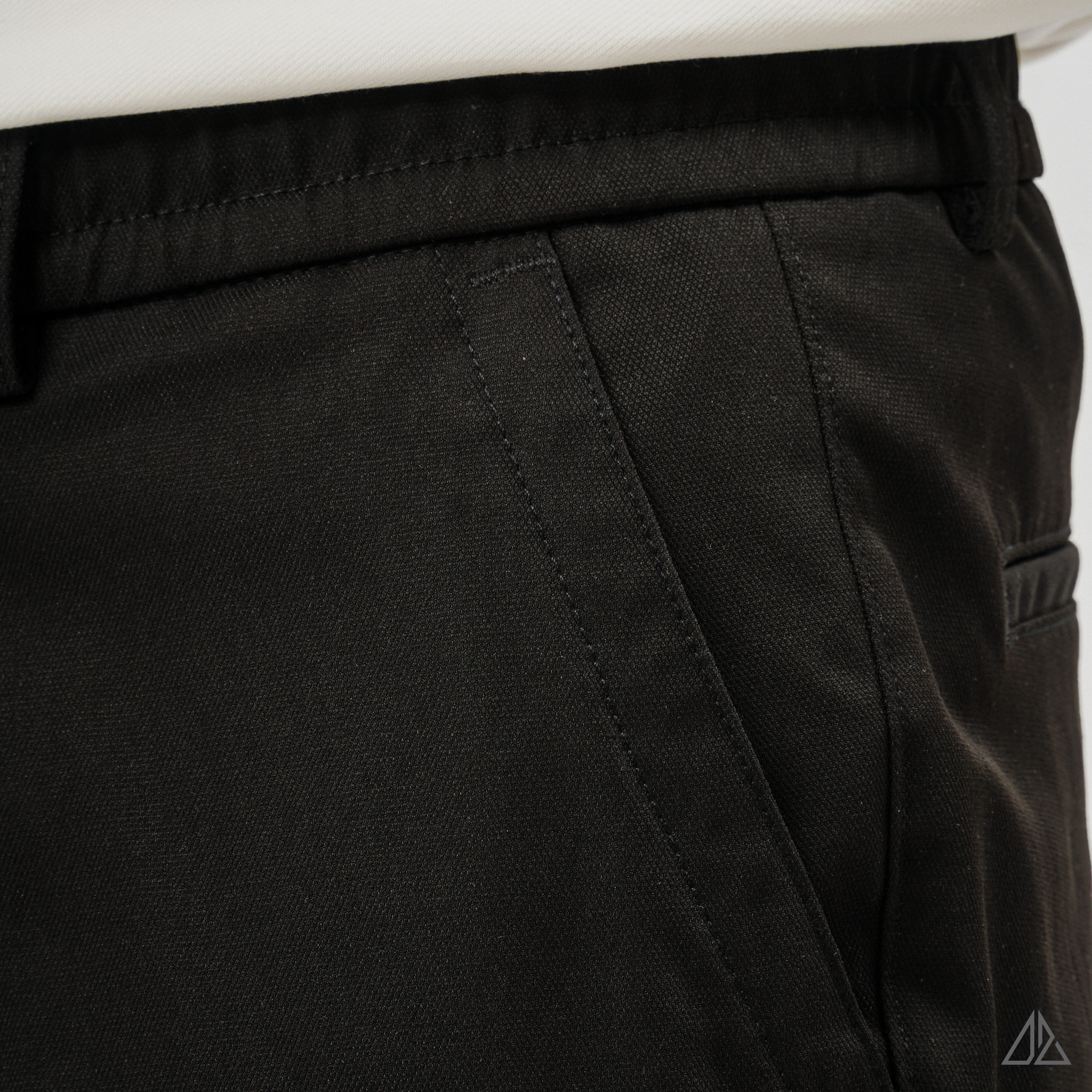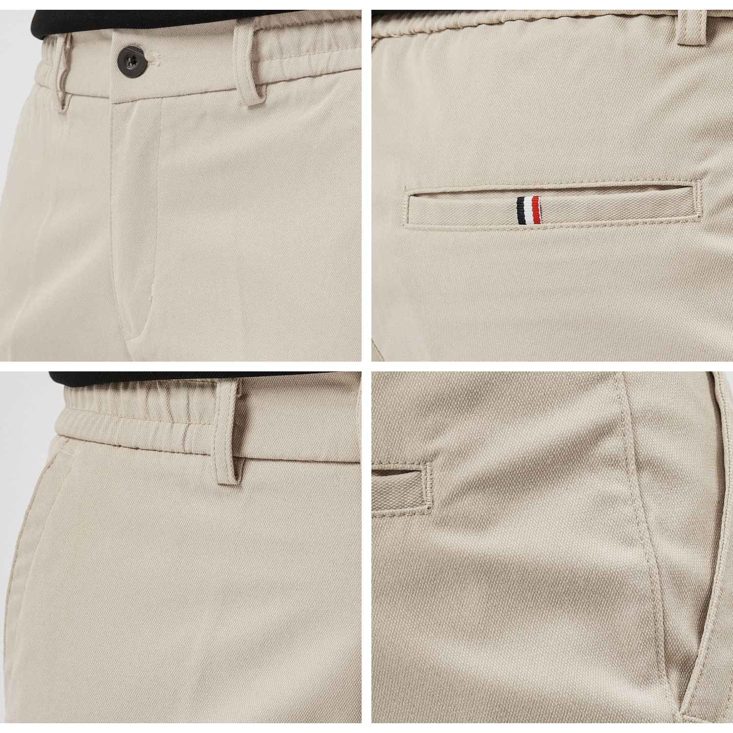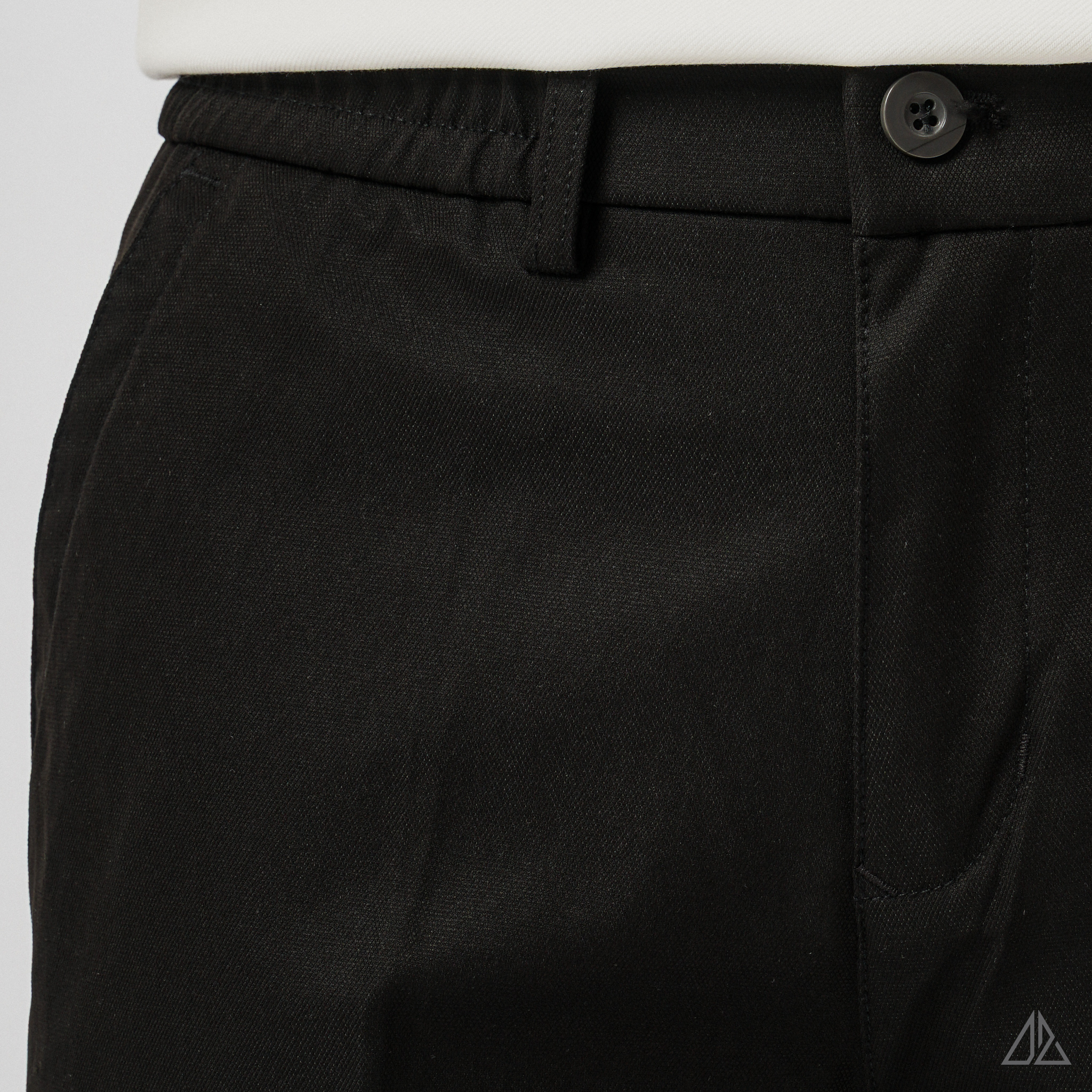Về thiết kế: Điểm "đắt giá" nhất của L-HKT87 nằm ở thiết kế đai lưng chun sườn (Side-Elastic Waist) cực kỳ tinh tế. Phần chun co giãn được khéo léo đặt ở hai bên hông giúp quần tự động điều chỉnh vừa vặn theo vòng bụng, mang lại sự thoải mái tuyệt đối khi ngồi hoặc sau khi ăn no mà không hề bị lộ hay mất đi vẻ chỉn chu. Phom dáng Regular Fit tiêu chuẩn cùng túi sau dạng túi mổ (Welt Pocket) đính tag 3 màu tạo nên diện mạo gọn gàng, thanh lịch.